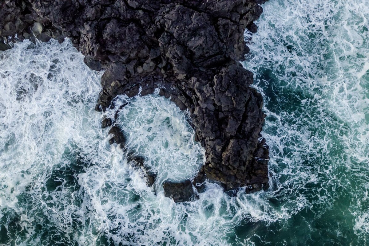 Brimketill is a small, naturally carved pool, by marine erosion, at the lava shore edge west of the town of Grindavík.