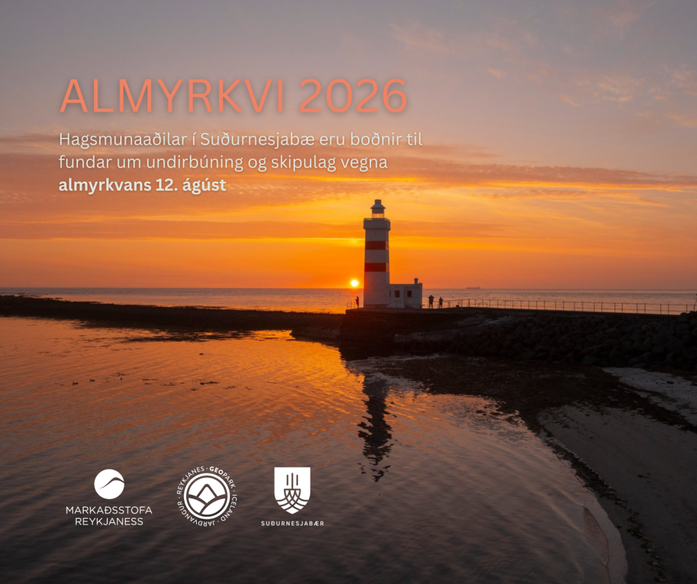 Suðurnesjabær, í samstarfi við Markaðsstofu Reykjaness og samstarfshóp svæðisins um almyrkvann, býður hagsmunaaðilum í sveitarfélaginu til kynningar- og umræðufundar um almyrkvann sem verður 12. ágúst næstkomandi. Fundurinn fer fram 13. febrúar kl. 10:00–11:30.