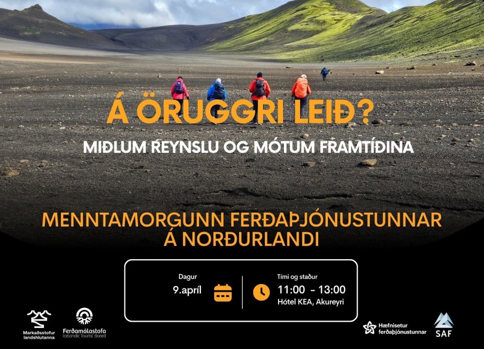 Menntamorgunn ferðaþjónustunnar bregður sér norður yfir heiðar til Akureyrar og býður ykkur til stefnumóts um öryggismál í íslenskri ferðaþjónustu fimmtudaginn 9. apríl kl. 11:00–13:00, á Hótel Kea. Viðburðurinn verður bæði staðfundur og í beinu streymi.