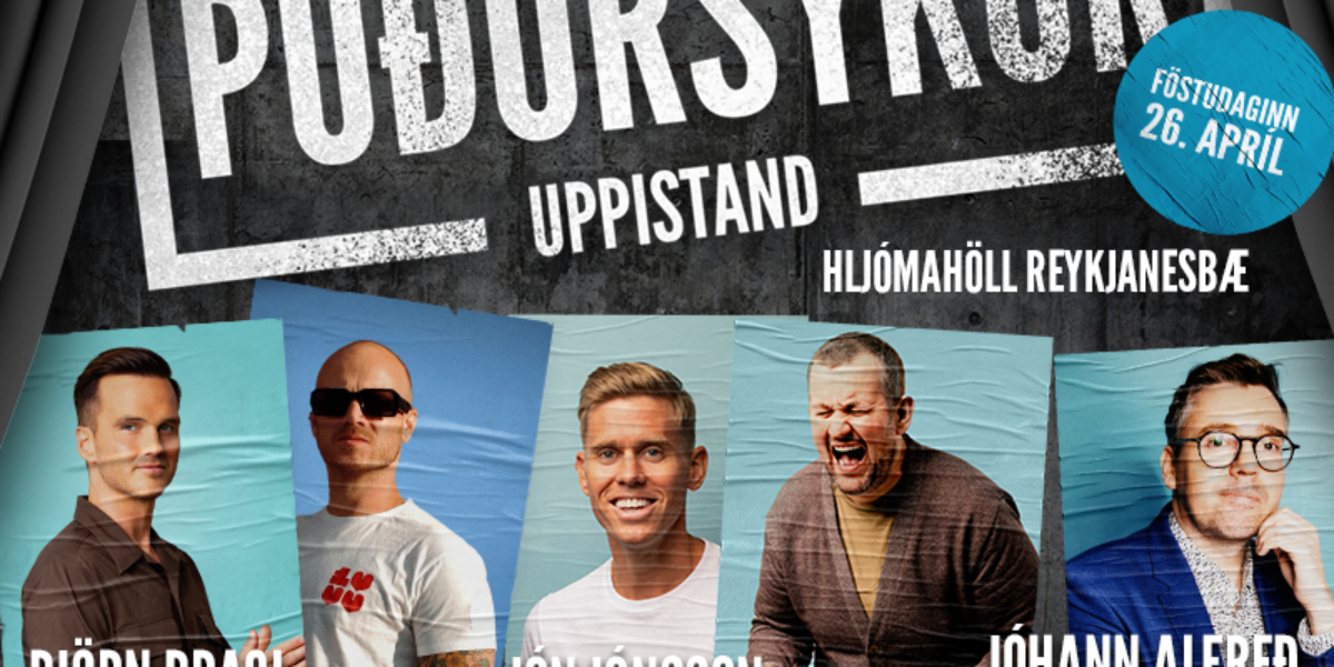 Á sýningunni í Hljómahöll föstudagskvöldið 26. apríl nk. verður einvalalið grínista en þá koma fram þeir Björn Bragi, Dóri DNA, Emmsjé Gauti, Jóhann Alfreð og Jón Jónsson.